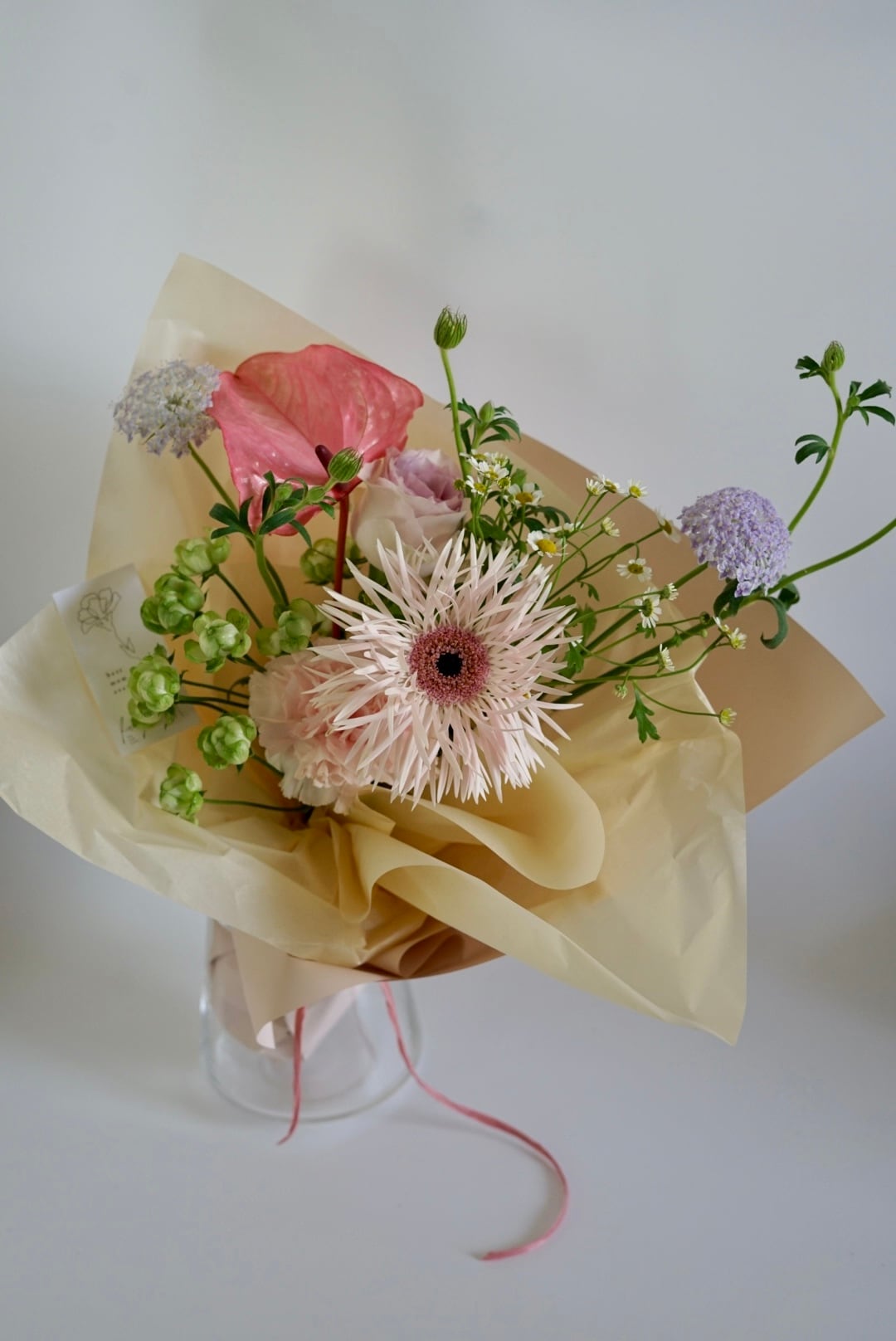この時季ならではの生き生きとしたお花の個性を大切に、ひとつひとつ心を込めてお作りいたします。