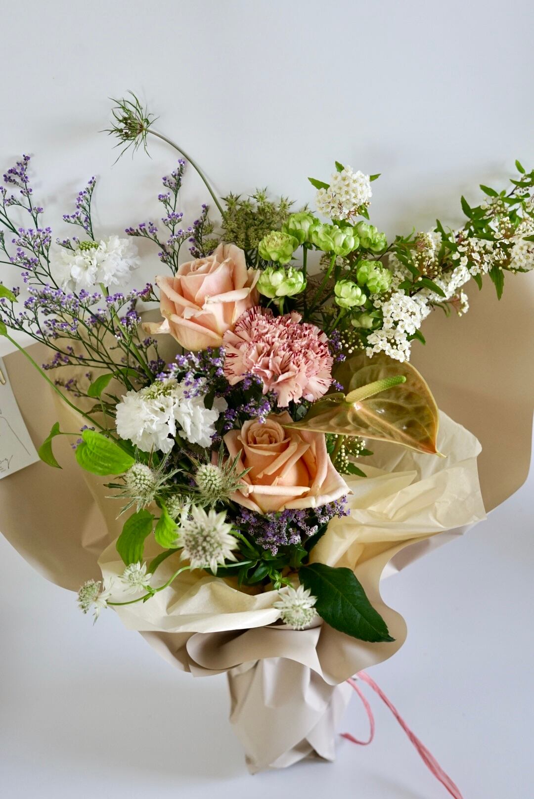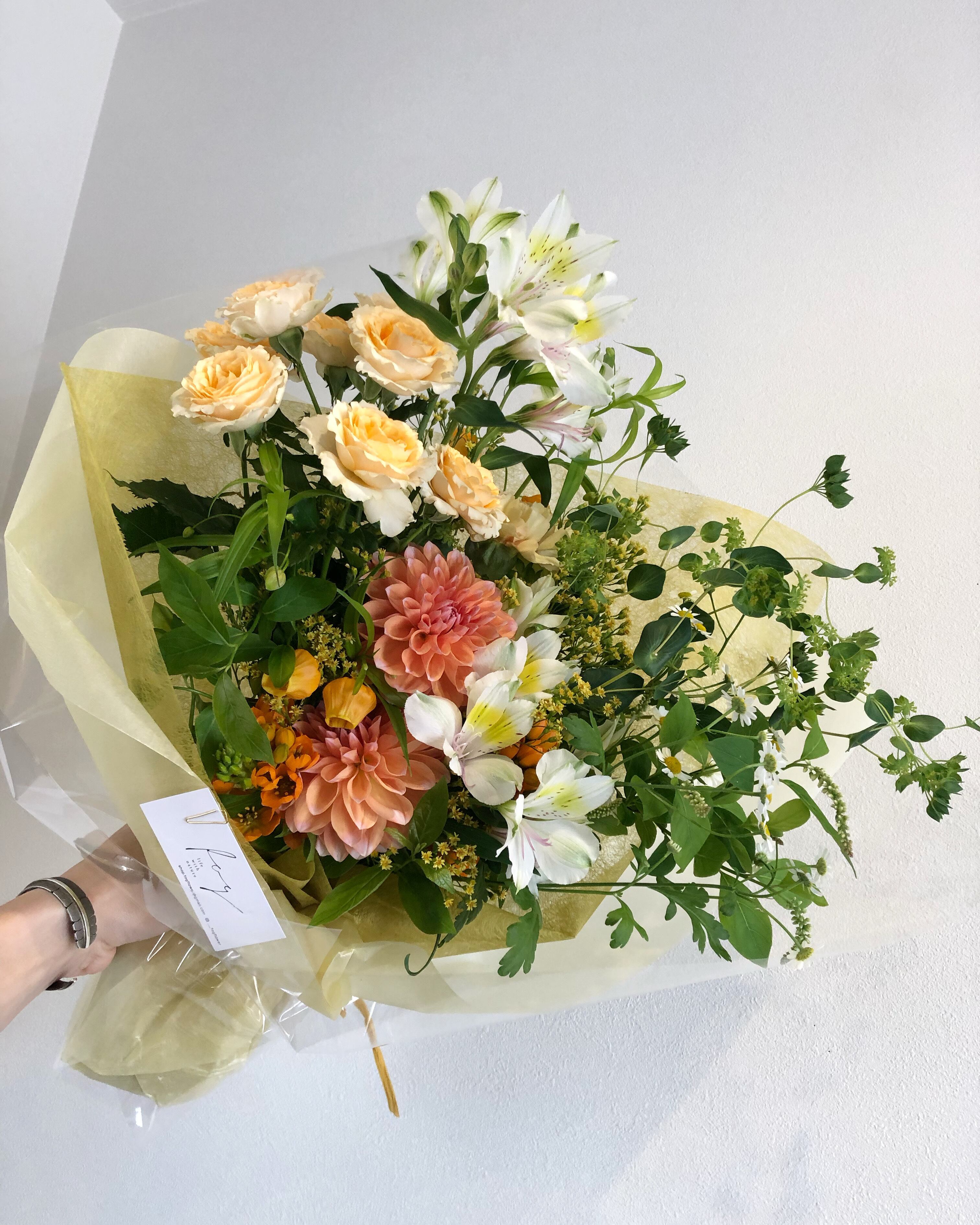 この時季ならではの生き生きとしたお花の個性を大切に、ひとつひとつ心を込めてお作りいたします。