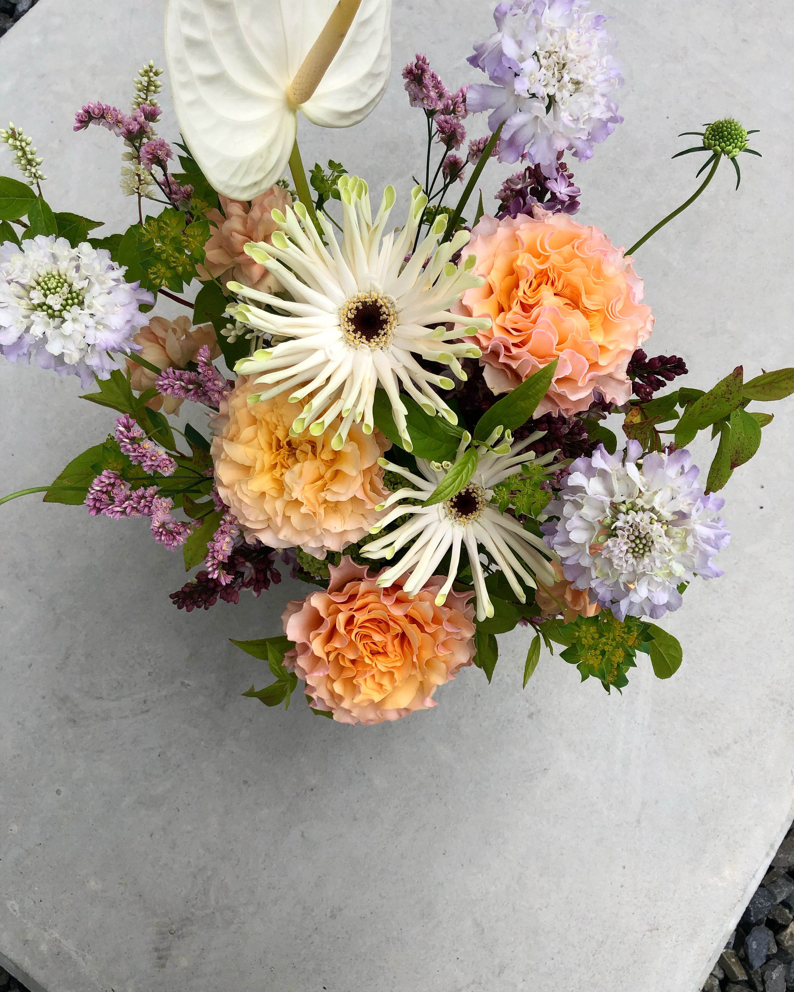この時季ならではの生き生きとしたお花の個性を大切に、ひとつひとつ心を込めてお作りいたします。