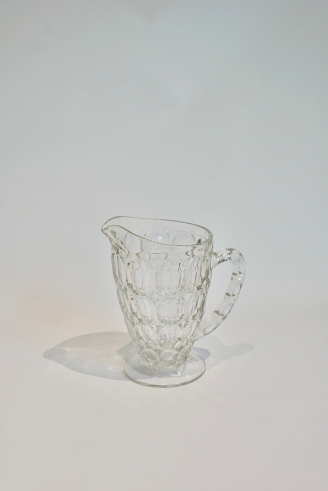 アメリカ、JEANNETTE GLASS社製のクリアピッチャー。重厚感もあり、クリアガラスが魅了的です。