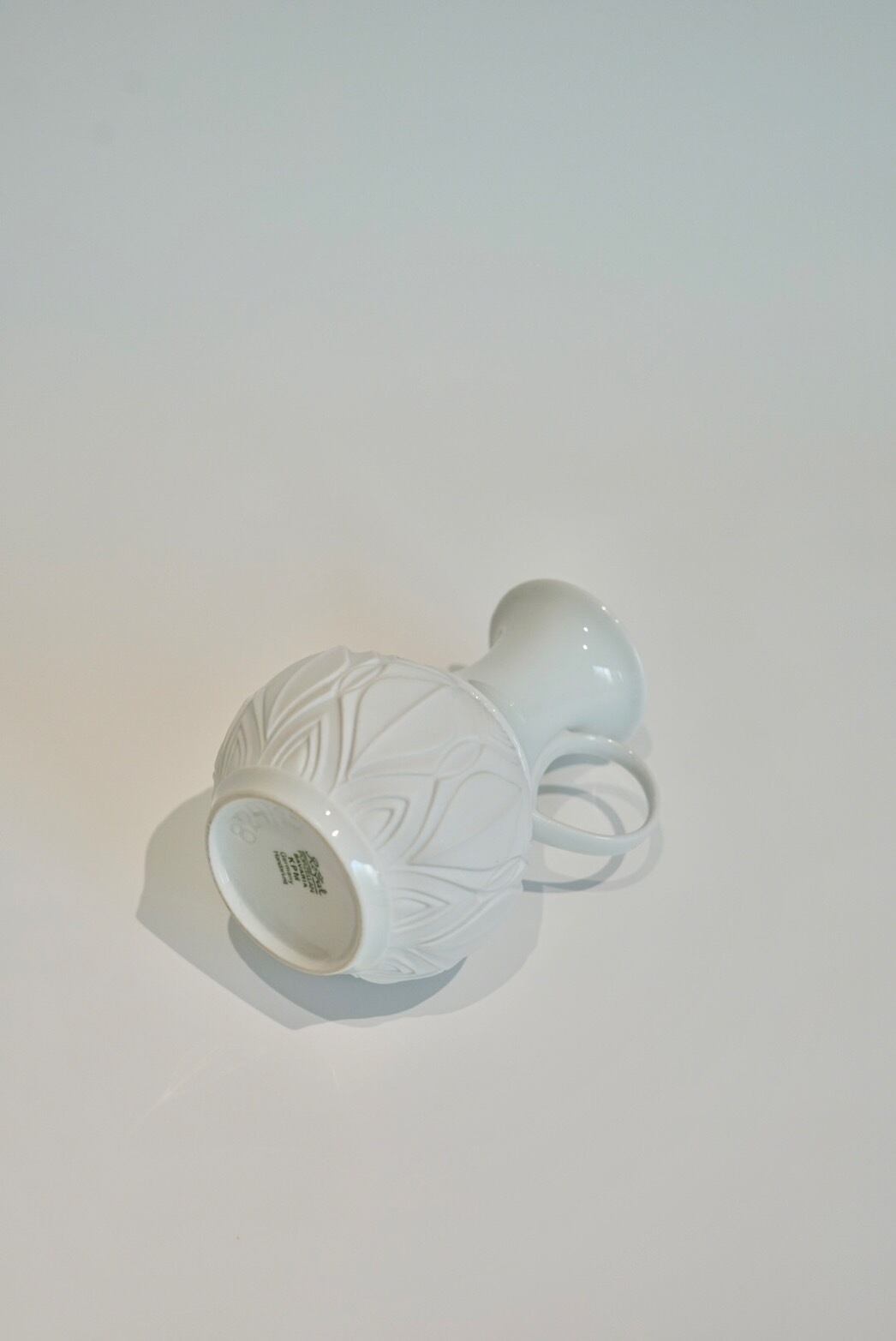 1970年代頃のドイツで制作された陶器製のフラワーベースです。シンプルな形の中に、描かれた模様が美しく魅力的です。